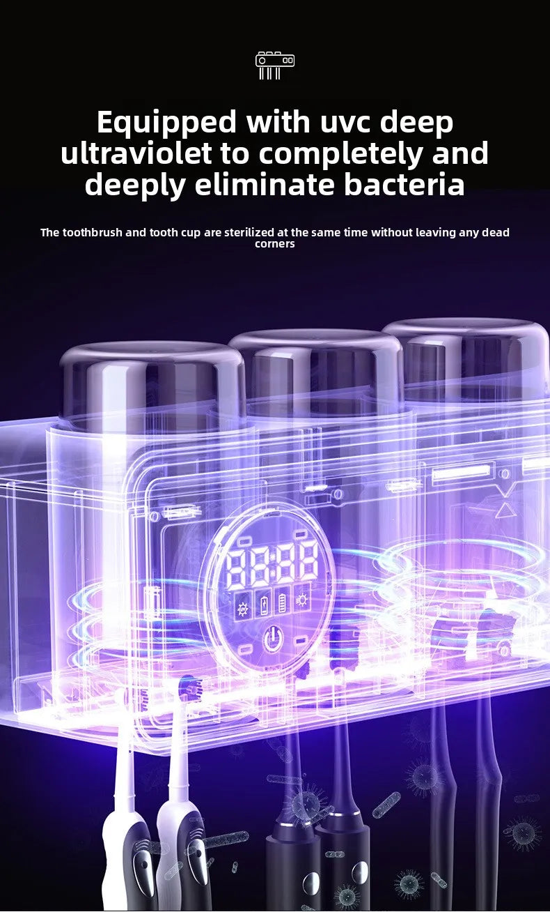 A UV toothbrush sterilizer designed to keep your brush clean between uses. Its extended, wall‑mounted design provides full coverage for the toothbrush head while helping reduce everyday germ buildup on bristles, supporting a fresher and more hygienic oral‑care routine.